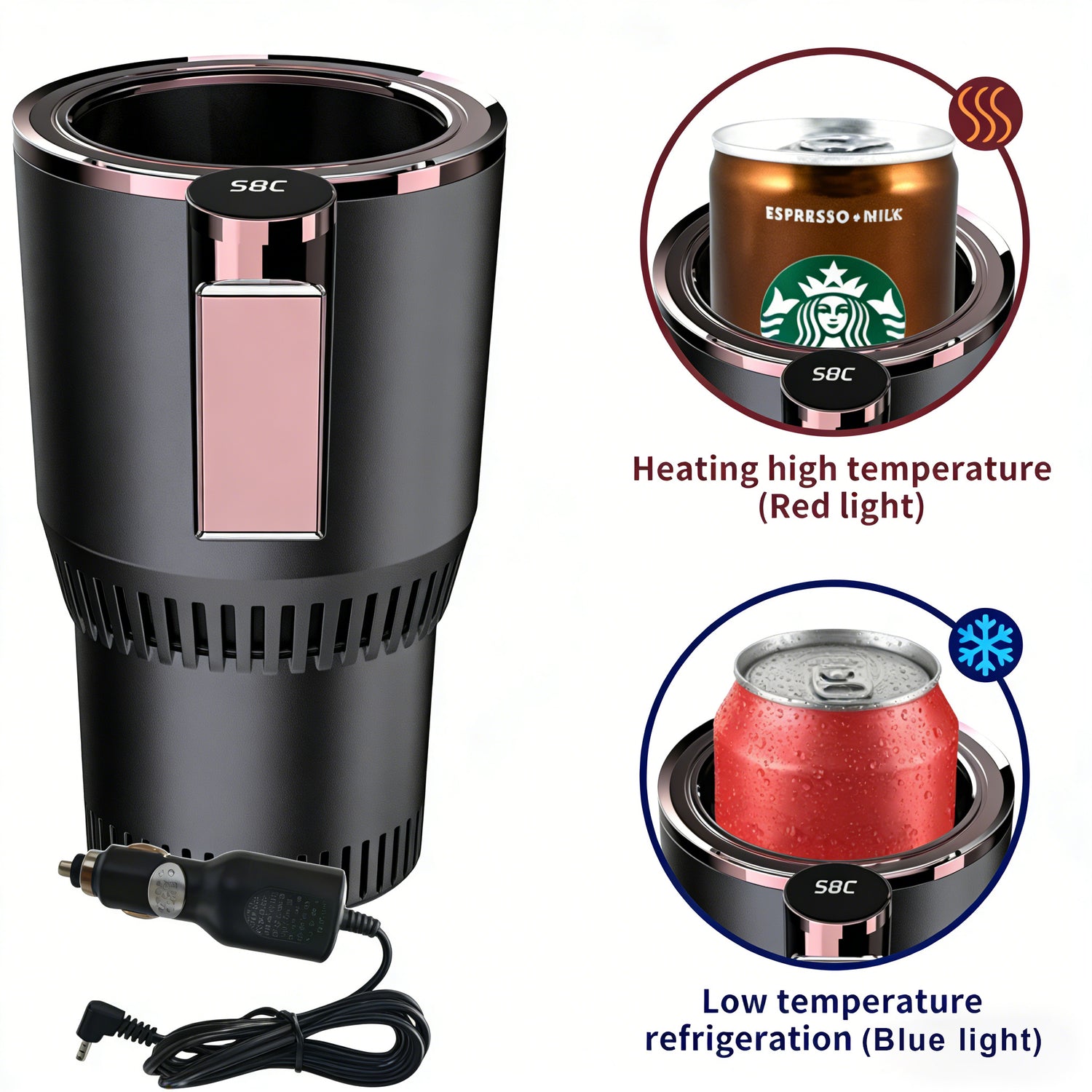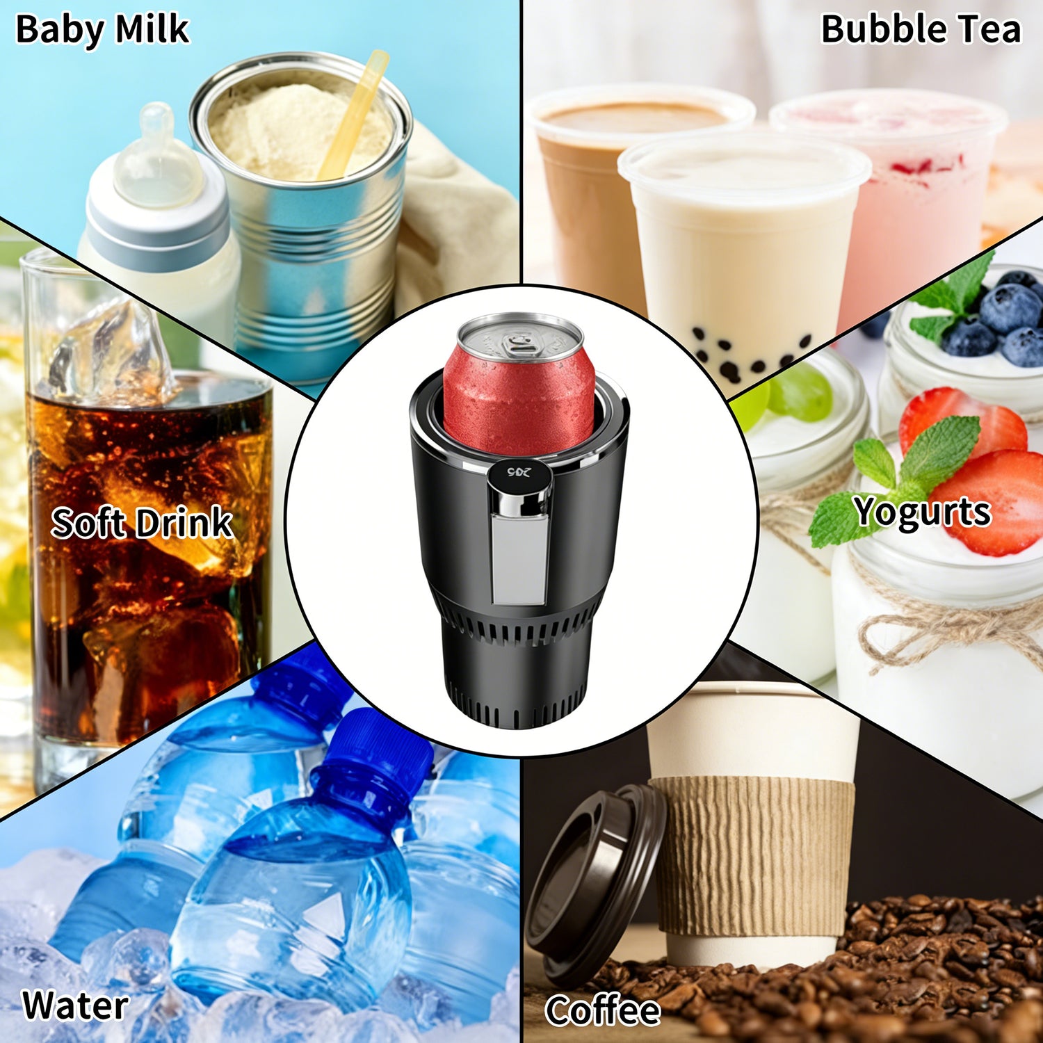 Enjoy your favorite drinks at the perfect temperature wherever you go with the2-in-1 Car Heater & Cooler Cup. Frombaby milktocoffee, soft drinks, water, bubble tea, and yogurts, this smart portable cup adapts to all your beverage needs. Withfast heating and rapid cooling technology, it ensures hot drinks stay warm and cold drinks stay chilled.