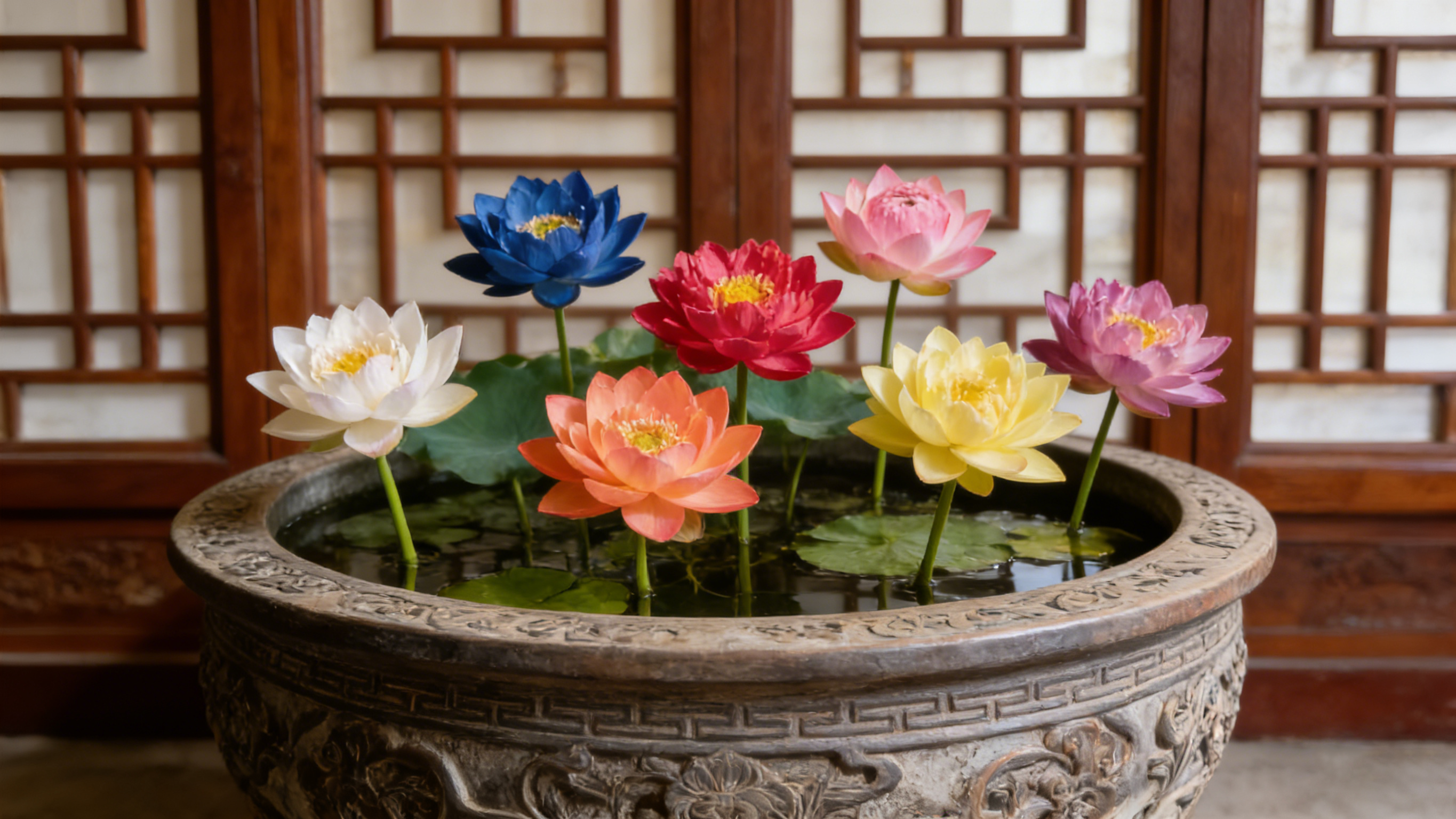 A stunning mix of 20 distinct lotus colors, ranging from delicate soft pinks, creamy whites, and pale yellows to bold magentas, deep purples, and vibrant corals. When grown together in one basin, they create a layered, eye-catching colorful display that adds a lively yet elegant touch to any space.