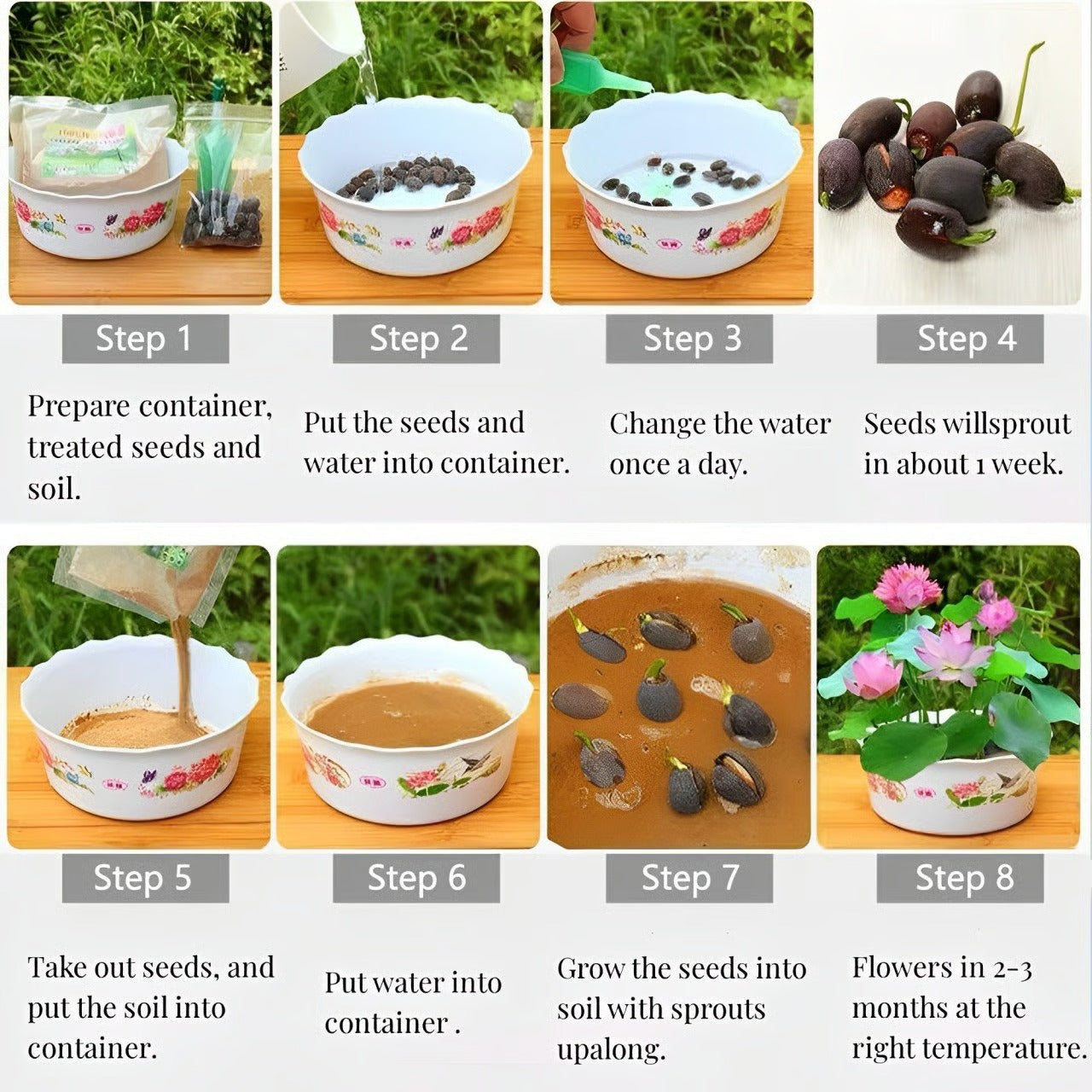 Super easy to grow—these lotus seeds are "live when in water", germinating in just 7 days with a 95% high survival rate. No tedious care, just add water and follow the simple steps, and you’ll see sprouts quickly, perfect for busy people or gardening novices.