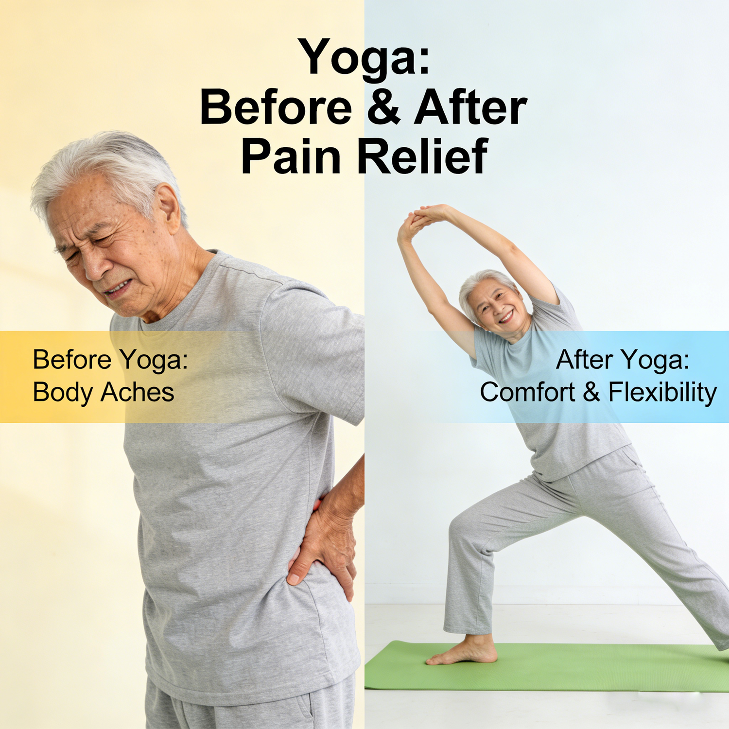 Stiff joints and chronic pain (from arthritis, osteoporosis, or age-related wear) complicate simple tasks. Our low-impact, slow-paced poses focus on gentle joint mobilization, lubricating joints, relieving muscle tension (neck, back, hips), and boosting flexibility—easing daily movements with less discomfort.