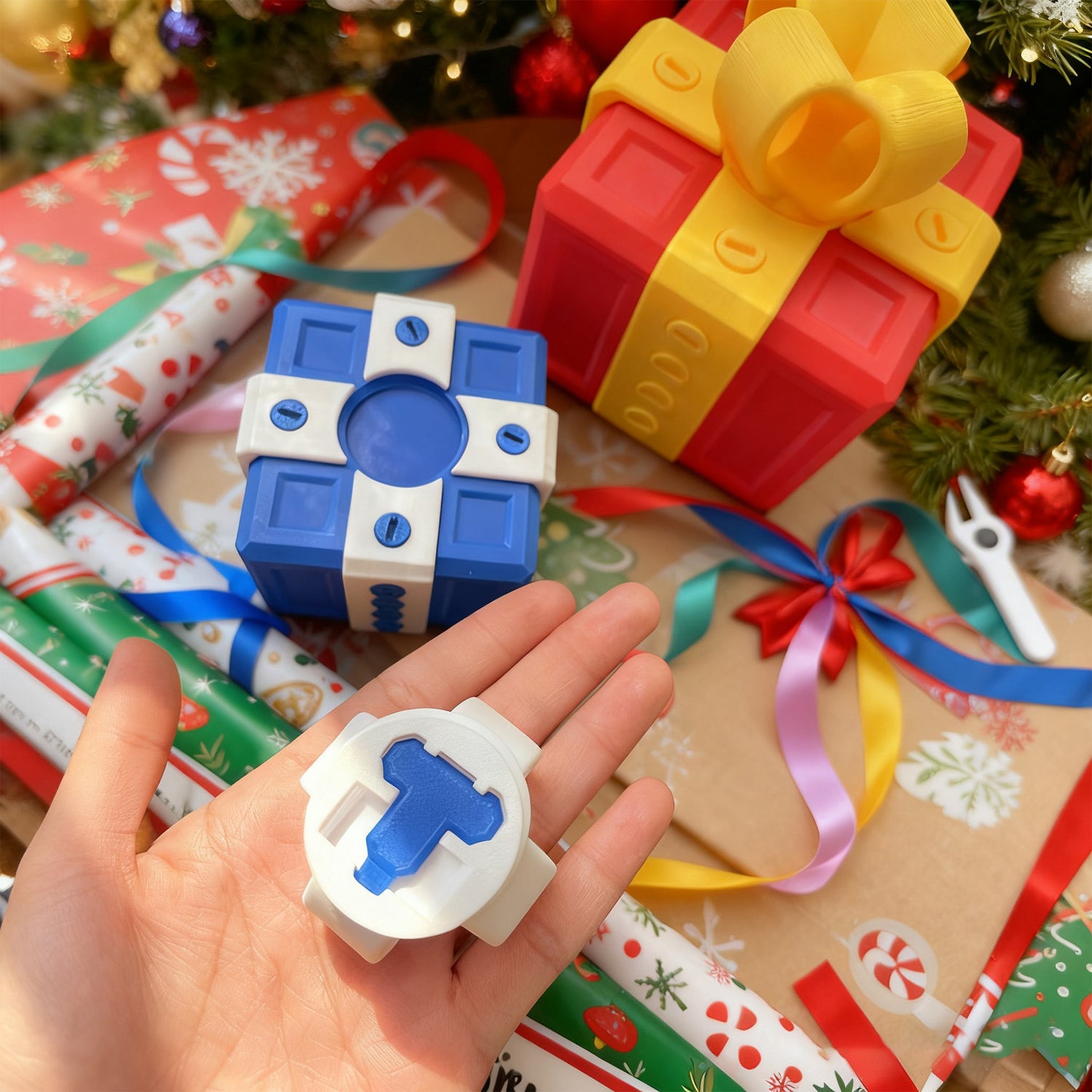 Unlock the gift box through a series of mechanisms involving rotation, pushing, and other operations, combining collectible and puzzle-solving features, ideal for mechanical puzzle enthusiasts to explore.
